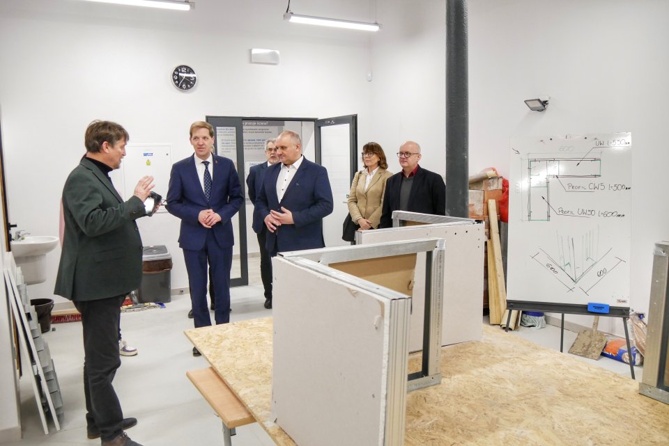 Delegacja zapoznała się również z aktualną ofertą edukacyjną centrum – obejmującą szkolenia i zajęcia w obszarze prac wykończeniowych – oraz z kierunkami dalszego rozwoju przedsięwzięcia, w tym z realizacją inwestycji w modelu dwuetapowym. Spotkanie było także okazją do rozmów o wymianie doświadczeń i dobrych praktyk w zakresie organizacji kształcenia zawodowego oraz rozwiązań infrastrukturalnych wspierających naukę zawodu.