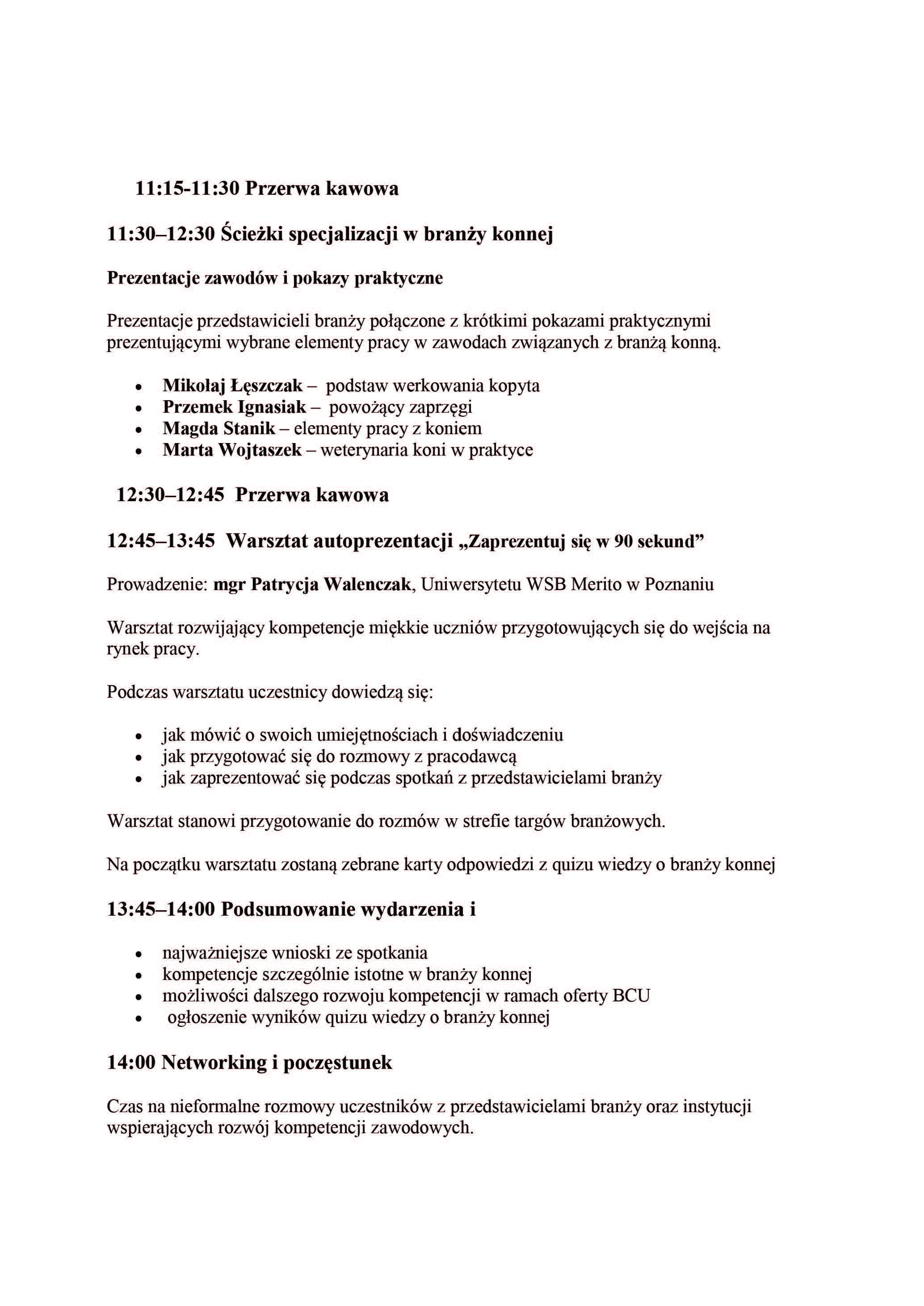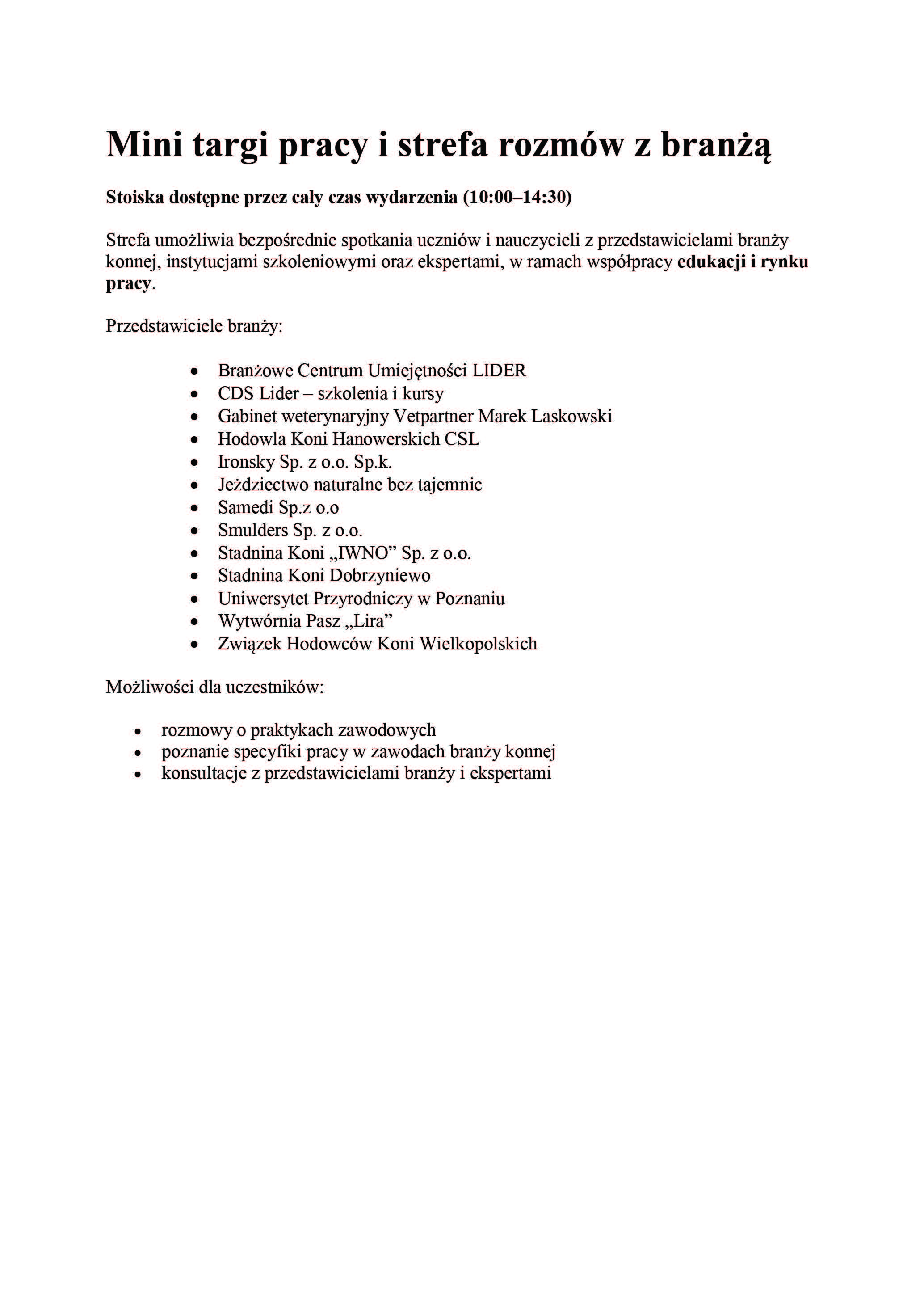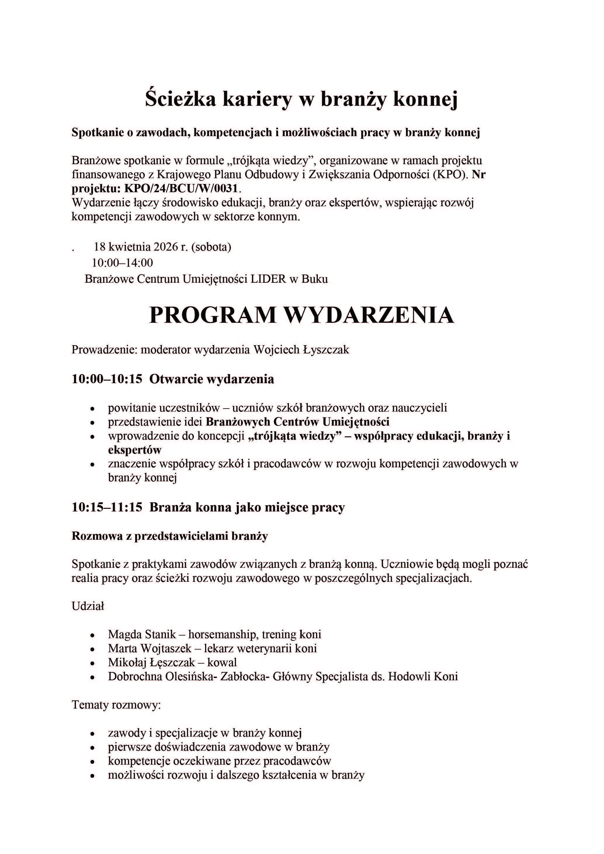 „Ścieżka kariery w branży konnej " - Mini targi pracy - Spotkanie o zawodach, kompetencjach i możliwościach pracy w branży konnej